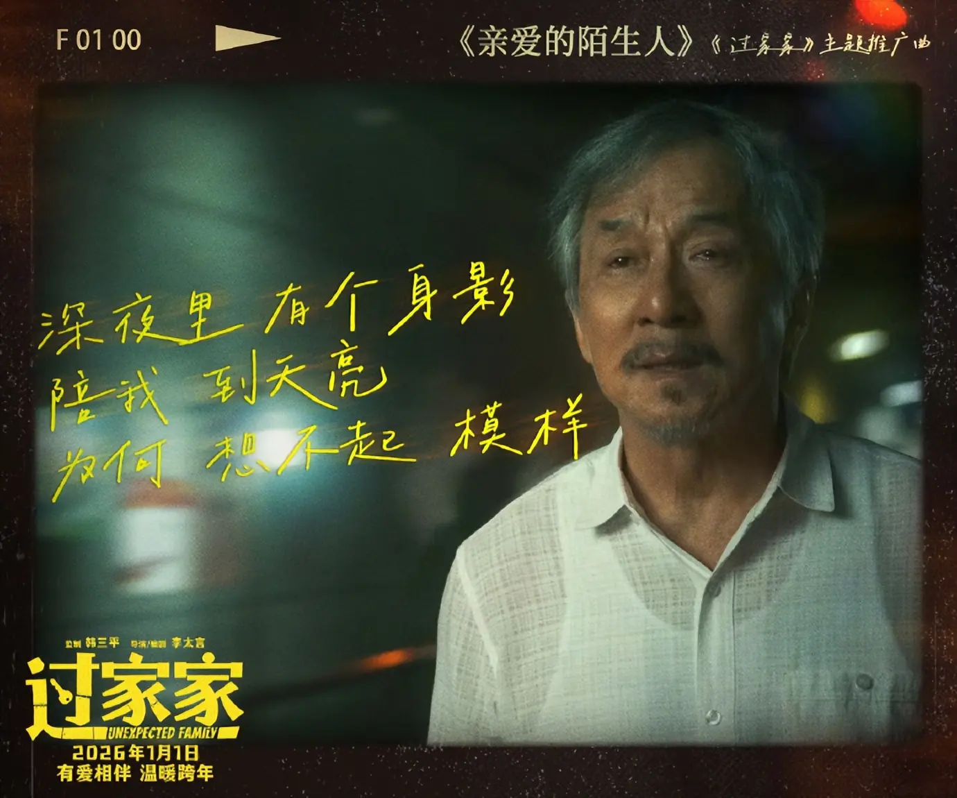 国际功夫巨星成龙在电影《过家家》中出演一位孤独的退休老人任爹,因阿尔茨海默症时常陷入混沌状态,深藏对失踪儿子的愧疚与思念。成龙颠覆以往动作形象,以满头白发、步履蹒跚的造型,细腻诠释患病老人的迷茫与柔软。